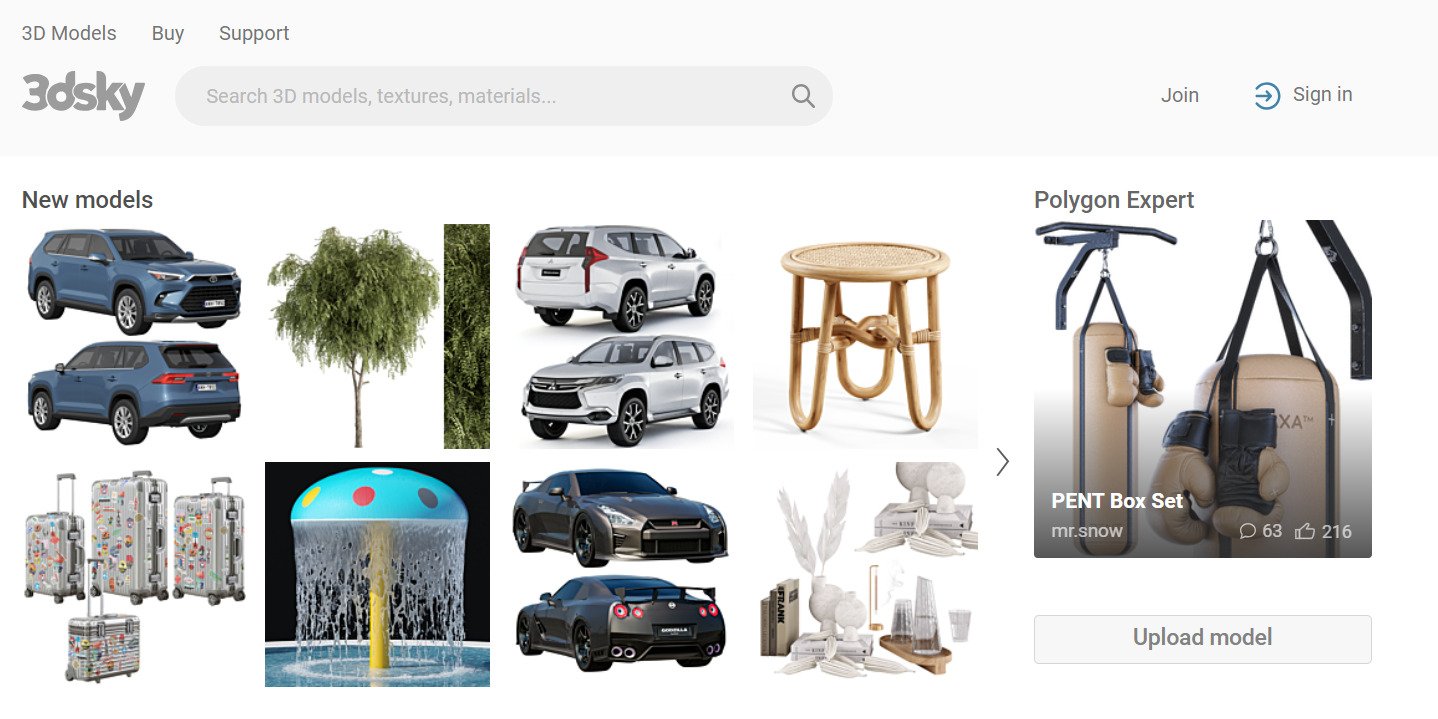 3DSky has a large library of 3dskymodel, with over 1,500,000 models available. The models are categorized into different categories, such as architecture, vehicles, characters, and plants. You can also search for models by keyword.