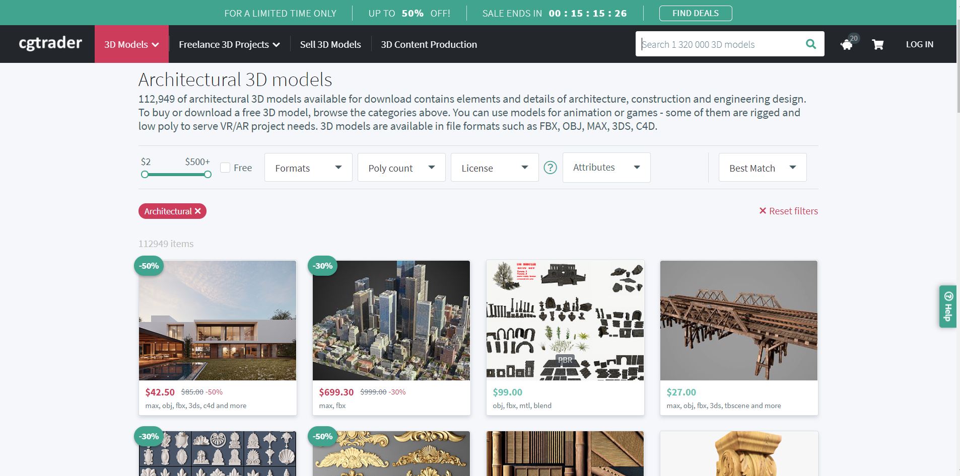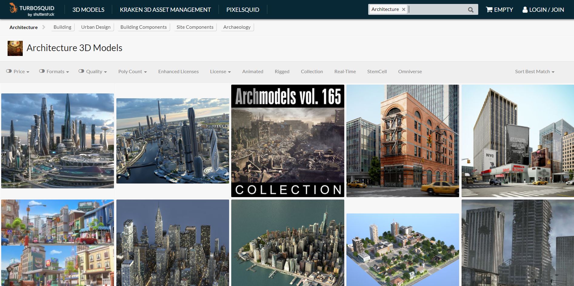 TurboSquid is one of the most sought after suppliers of 3D models for sale today on the Internet. They have hundreds of thousands of products that are neatly categorized into Product Collections where it contains a list of items that belong to different categories such as Vehicles, Animals, Props, Furniture, and many more.